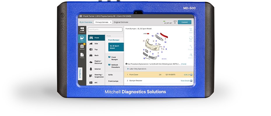 Mitchell’s collision estimating system works seamlessly with the MD-500. This Mitchell Diagnostics hand-held device lets you perform scans, write appraisals and complete dynamic and static* ADAS calibrations.